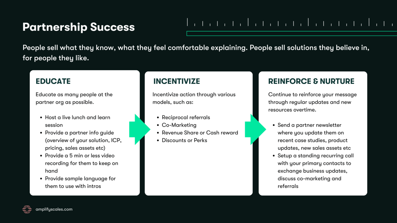 Important to note here that the options mentioned above are not ‘pick one’ options. Partner A may be most incentivized by co-marketing, while Partner B chooses a Rev Share, and Partner C picks 2 of the 4. Mix and match to meet their needs and incentivize action.