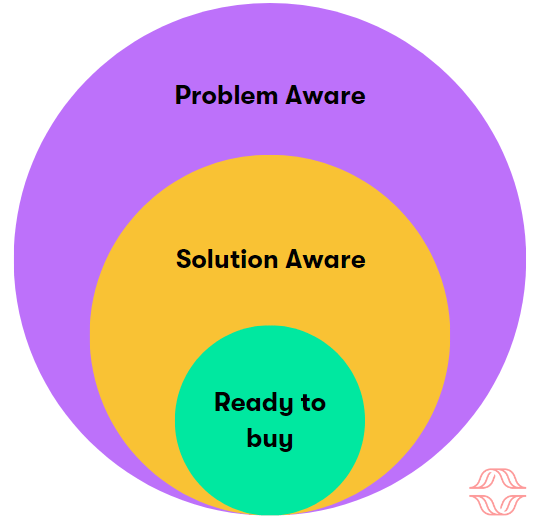 Think of your TAM like this: Some are problem-aware, some are solution-aware, and a small portion are ready to buy right now.