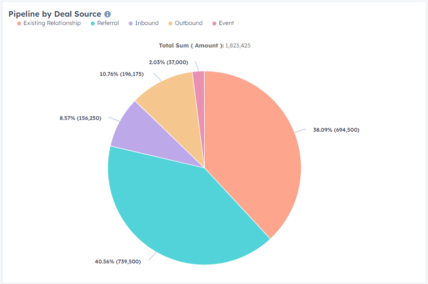 Now, create a pie graph showing where ALL of your deals came from by source (across all deal stages).